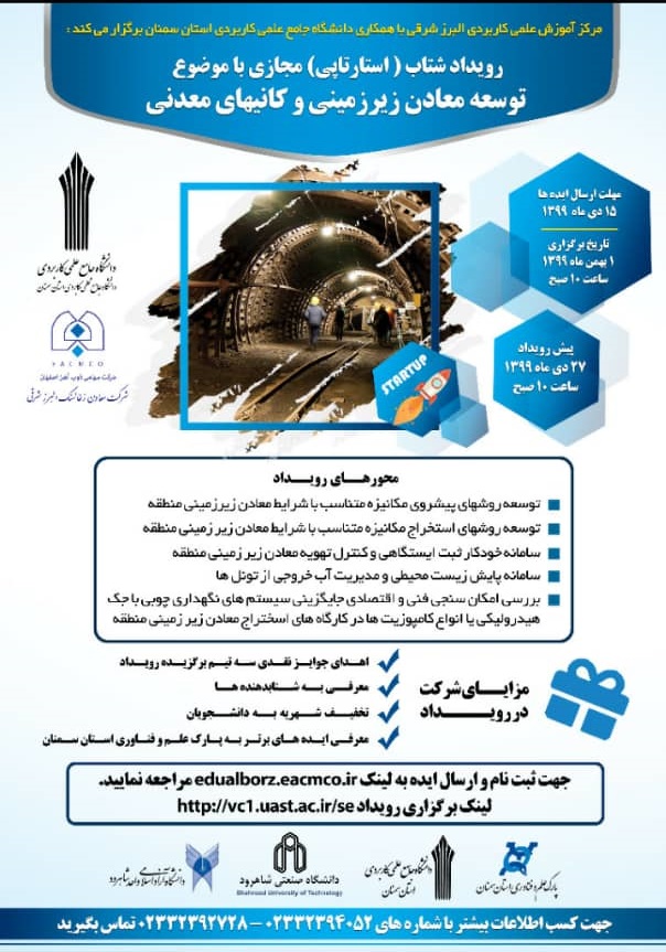 رویداد شتاب توسعه معادن زیرزمینی و کانیهای معدنی ۰۲ دی ۱۳۹۹ | ۱۲:۵۴ کد : ۵۲۹۰۳ اخبار ارسال به دیگران نام شما ایمیل شما ایمیل دریافتکننده ارسال انصراف تعداد بازدید:۵۰۴