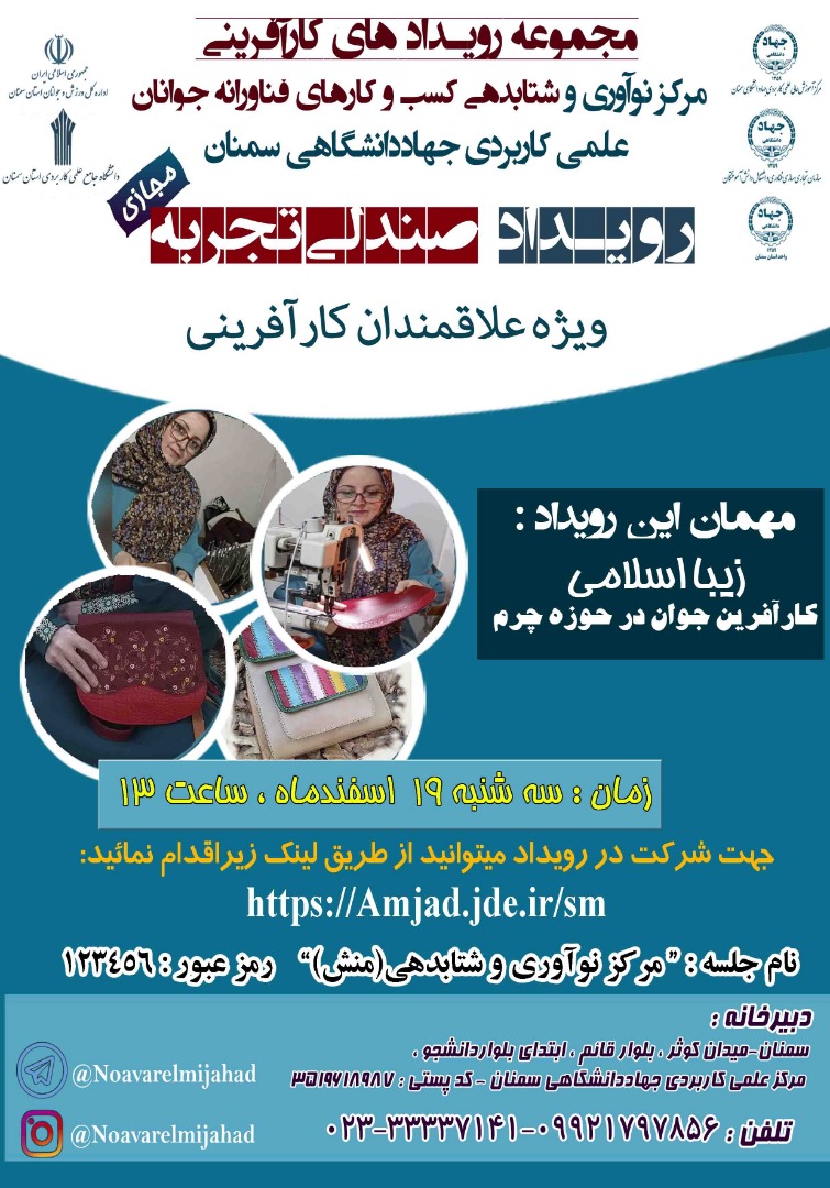 رویداد صندلی تجربه مرکز نوآوری و شتابدهی مرکز علمی کاربردی جهاد دانشگاهی سمنان