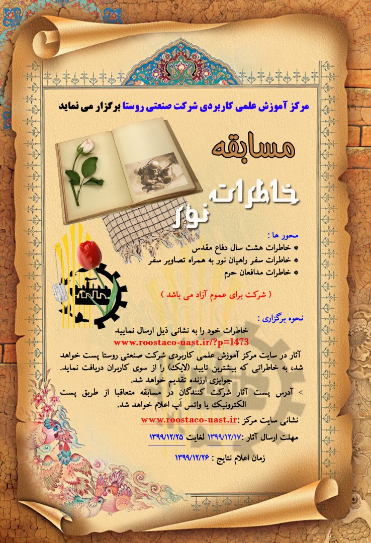 برگزاری مسابقه خاطرات نور( ویژه روز راهیان نور و بزرگداشت شهدا) توسط مرکز آموزش علمی کاربردی شرکت صنعتی روستا