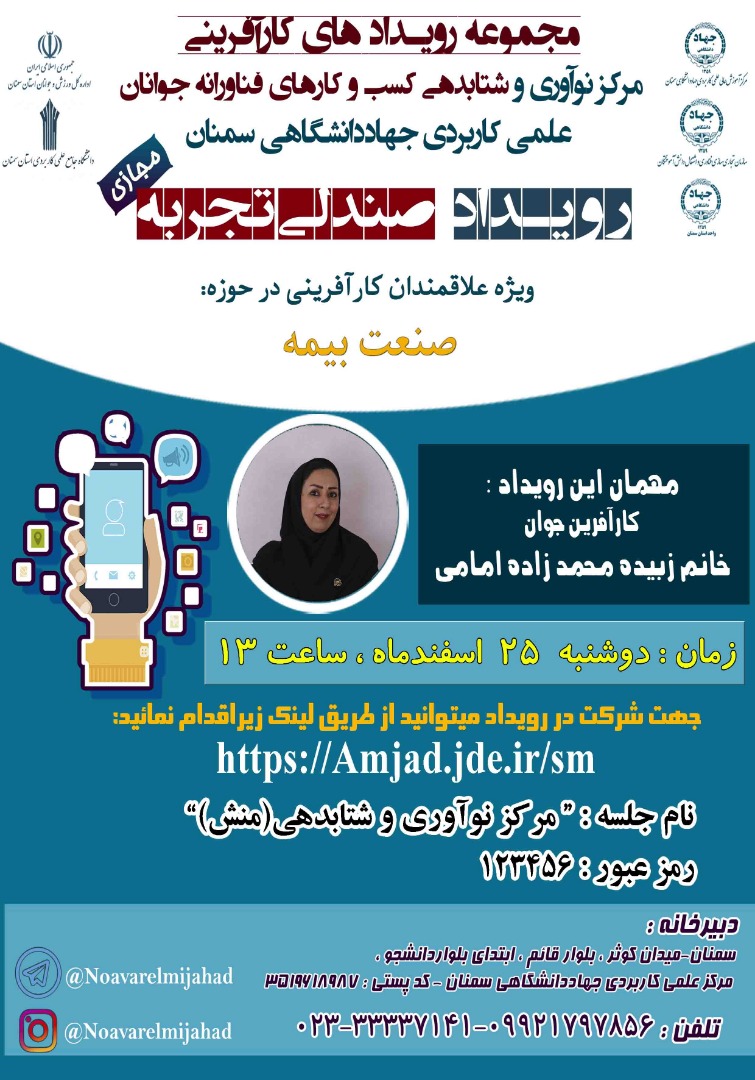 رویداد صندلی تجربه مرکز نوآوری و شتابدهی مرکز علمی کاربردی جهاد دانشگاهی سمنان
