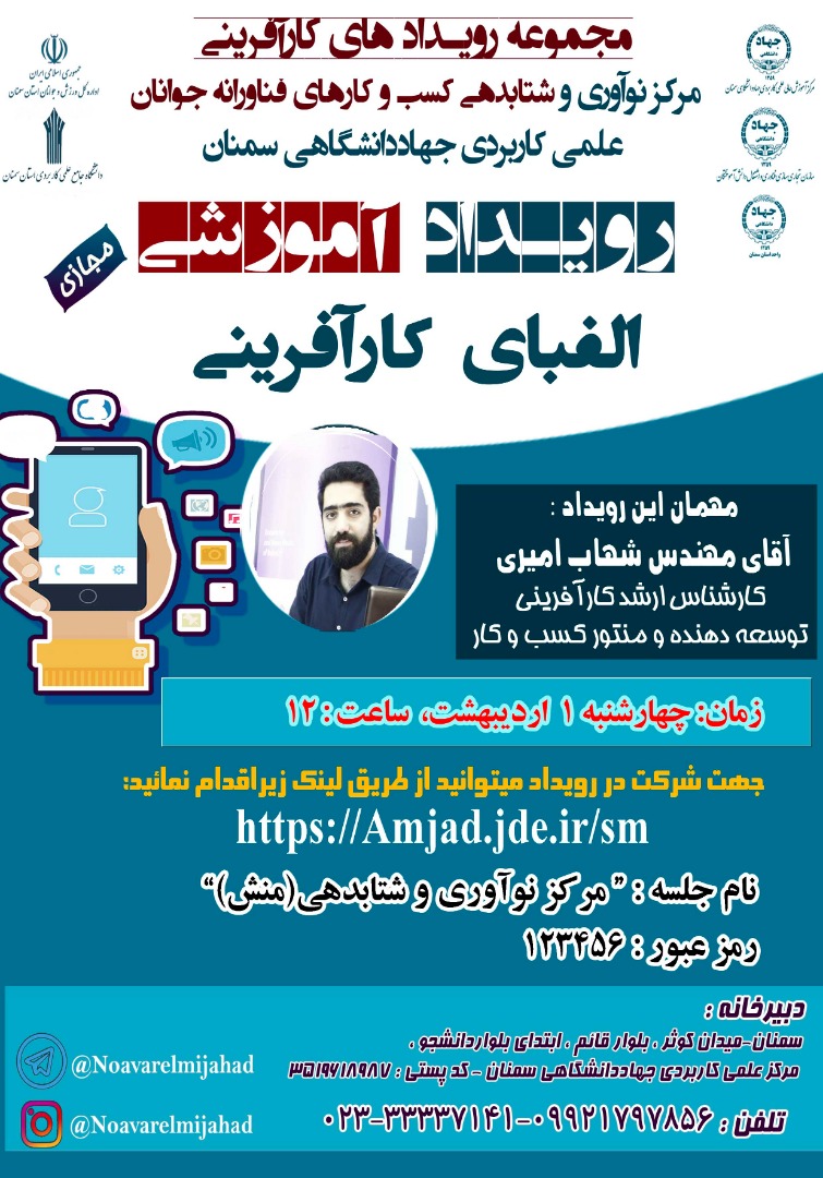 رویداد اموزشی الفبای کارآفرینی ۳۱ فروردین ۱۴۰۰ | ۰۷:۳۰ کد : ۵۴۴۷۶ اخبار ارسال به دیگران نام شما ایمیل شما ایمیل دریافتکننده ارسال انصراف تعداد بازدید:۸۵۴