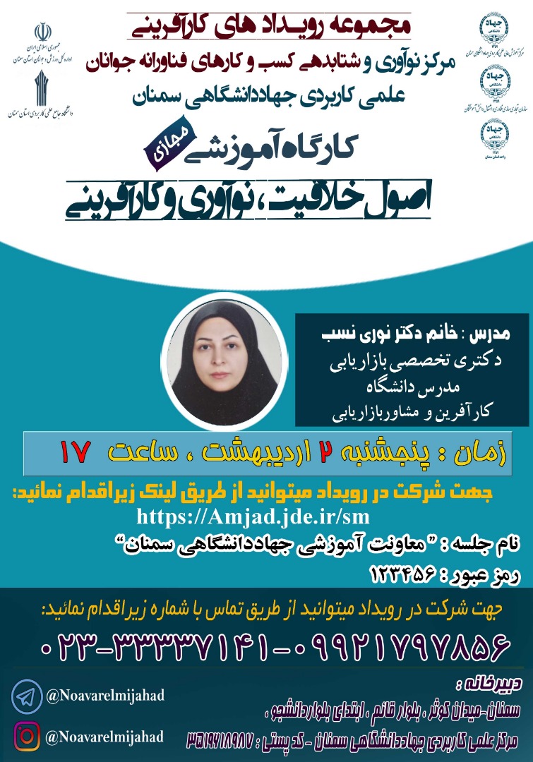 کارگاه آموزشی اصول خلاقیت، نوآوری و کارآفرینی ۳۱ فروردین ۱۴۰۰ | ۰۷:۳۲ کد : ۵۴۴۷۷ اخبار ارسال به دیگران نام شما ایمیل شما ایمیل دریافتکننده ارسال انصراف تعداد بازدید:۹۰۱