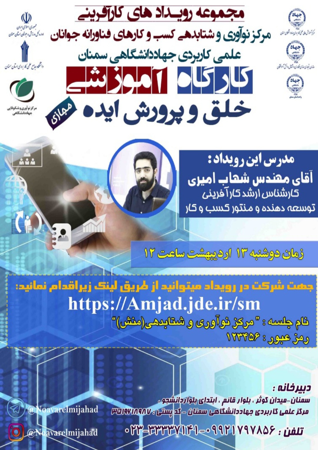کارگاه آموزشی خلق و پرورش ایده مرکز نوآوری و شتابدهی مرکز علمی کاربردی جهاد دانشکاهی سمنان ۱۲ اردیبهشت ۱۴۰۰ | ۱۸:۱۶ کد : ۵۴۶۳۷ اخبار ارسال به دیگران نام شما ایمیل شما ایمیل دریافتکننده ارسال انصراف تعداد بازدید:۸۳۸