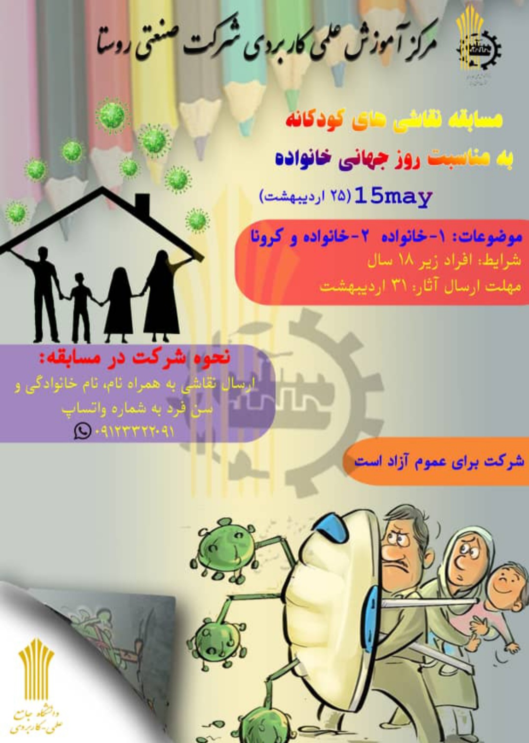 برگزاری مسابقه نقاشی های کودکانه به مناسبت روز جهانی خانواده توسط مرکز آموزش علمی کاربردی شرکت صنعتی روستا