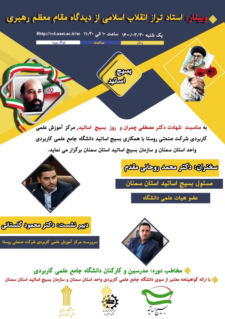 وبینار روز بسیج اساتید با سخنرانی مسئول بسیج اساتید استان سمنان توسط مرکز آموزش علمی کاربردی شرکت صنعتی روستا