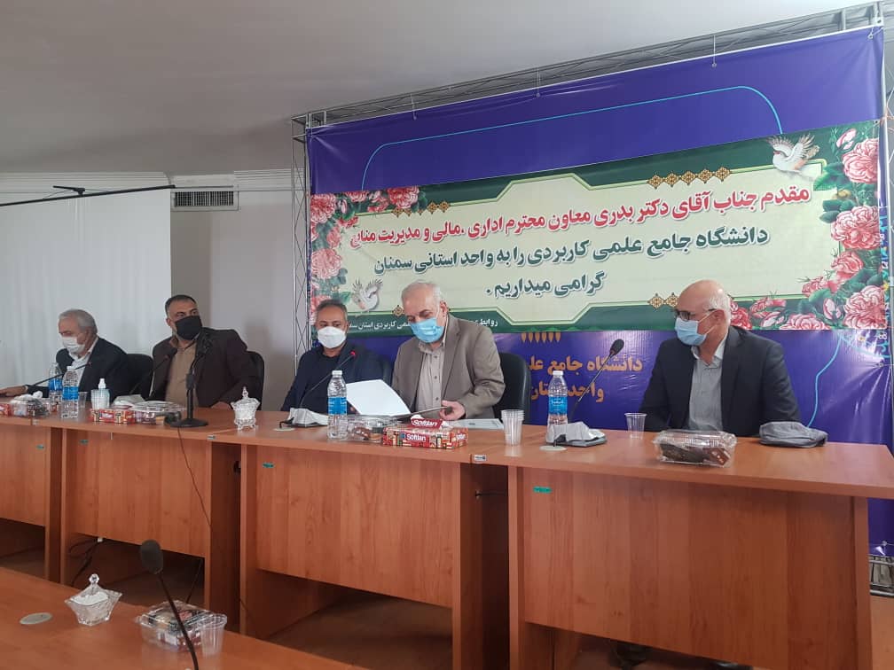 شایان ذکر است در این مراسم دکتر مصطفی فضلی مشاور و رئیس حوزه ریاست دانشگاه سمنان، دکتر فرزین یغمائی معاون اداری، مالی و مدیریت منابع دانشگاه سمنان، دکتر محمد تقی قربانیان رئیس اسبق دانشگاه جامع علمی کاربردی استان سمنان و روسای مراکز علمی کاربردی استان سمنان حضور داشتند.