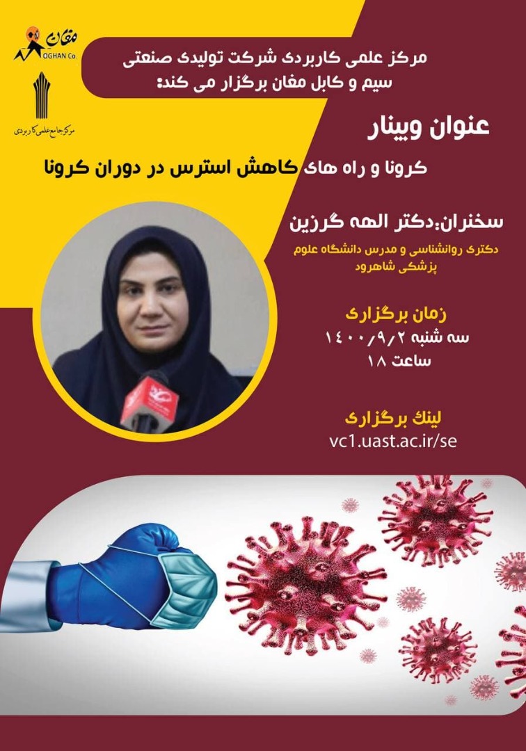 وبینار کرونا و راه های کاهش استرس در دوران کرونا ۰۱ آذر ۱۴۰۰ | ۱۲:۲۱ کد : ۵۷۶۵۰ اخبار ارسال به دیگران نام شما ایمیل شما ایمیل دریافتکننده ارسال انصراف تعداد بازدید:۵۶۳