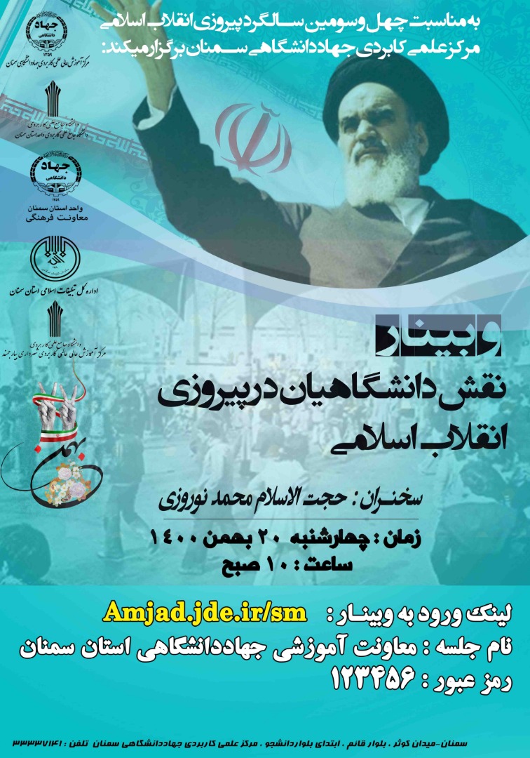 وبینار نقش دانشگاهیان در پیروزی انقلاب اسلامی توسط مرکز علمی کاربردی جهاد دانشگاهی سمنان ۱۸ بهمن ۱۴۰۰ | ۱۰:۵۴ کد : ۵۹۵۰۹ اخبار ارسال به دیگران نام شما ایمیل شما ایمیل دریافتکننده ارسال انصراف تعداد بازدید:۱۳۴۷