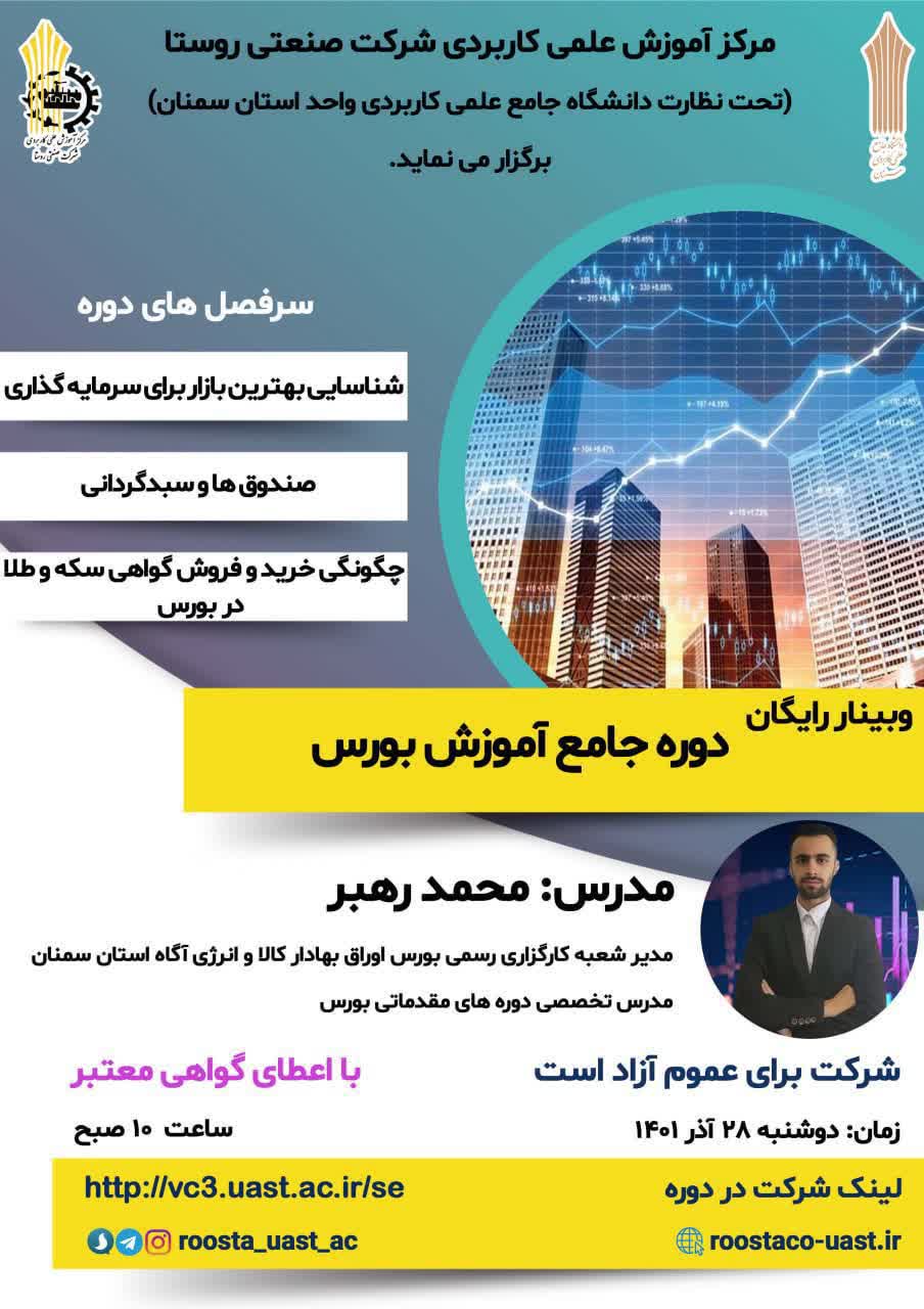 وبینار رایگان دوره جامع آموزش بورس توسط مرکز آموزش علمی کاربردی شرکت صنعتی روستا